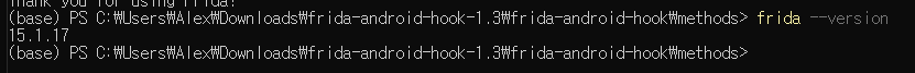 2. 아래와 같이 커맨드창 또는 PowerShell에 입력하여 프리다를 설치합니다.